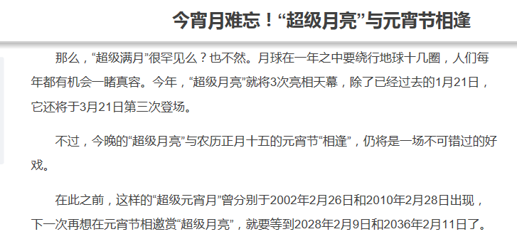 “超级月亮”与元宵节巧遇的新闻截图