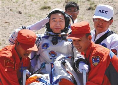 2012年6月29日上午,神舟九号飞船成功着陆,航天员景海鹏出舱。
