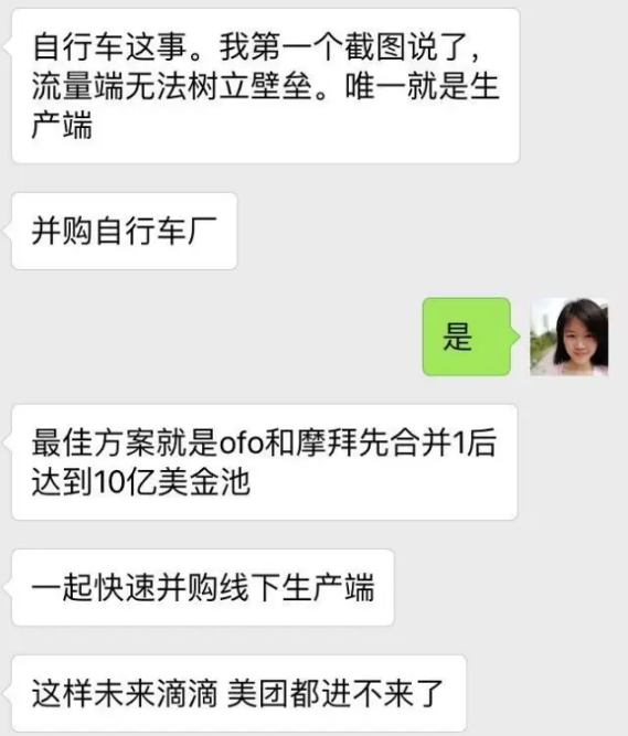 共享单车方面可能不会出现滴滴收快的的情况,实在想不出摩拜为什么要收了ofo,技术没啥壁垒,单车收了再改造的成本不比自己造低多少,况且报废数量不可追踪。所以我十分期待ofo的下场…”——我猜这位创业者和ofo有仇吧。