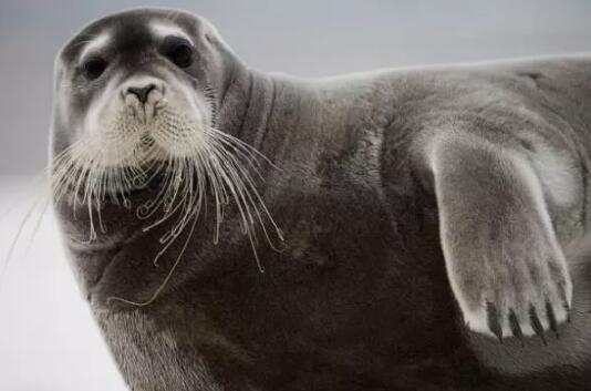 髯海豹又叫“胡子海豹”,因吻部两侧生有200多根笔直、粗硬的感觉毛而得名。不要以为这些胡须状的长毛是用来扮严肃的哦!这些密集的毛发基部有特殊的神经末梢,可以帮助髯海豹们感知海水温度和水流强度等。