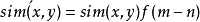 将在正态分布函数的基础上,设用户x 的评分项目个数为m,用户y的评分项目个数为n,max(m,n)表示用户,和用户y评分项目集合中评分项目个数较大的项目数,令正态分布函数中