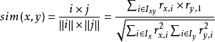 用向量和分别表示用户i 和用户j 的评分向量,而它们的相似性就是通过计算向量之间夹角的余弦来进行度量,则用户x 和用户y 之间的相似性为