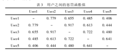 表2中行与列的交叉点为两用户的修正函数数值,易知:当两用户的评分项目数差距越大时,修正函数对其相关相似性的修正力度也就越大,这正好符合文中的预期。1