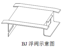 BJ塔板的结构特点BJ塔板技术的核心就是所用的鼓泡元件为BJ浮阀,如图1所示。 BJ浮阀从外形上看是一种条形浮阀和舌形浮阀的结合体。气体可从阀体的三个方向通过,不仅提高了气体的通过能力,而且因阀腿上所开设的导向孔朝向与塔板上液流方向一致,因而其对液体的流动可以起到很好的导向作用。