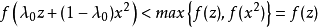 若f(x)为C上的严格拟凸函数,若对任意的x,y∈ C,x≠ y,x≠y,f(x)=f(y),存在λ∈ (0,1),有
