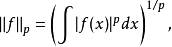 是一个半范数,它对所有能使式子右边勒贝格可积的函数有定义。然而,对于任意定义在勒贝格测度为 0 的支撑上的函数,其半范数皆为 0 。在“除掉”这些函数(将它们归为 0 函数的等价类)之后,得到的商空间就是一个赋范向量空间:LP空间。2