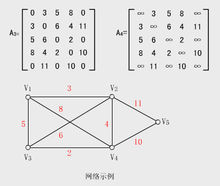 【例】下面带权图的两种邻接矩阵分别为A 3 和A 4 。