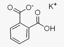邻苯二甲酸氢钾是一种化学物质,分子式是C8H5KO4。无色单斜结晶或白色结晶性粉末。在空气中稳定,能溶于水,微溶于醇。溶于约12份冷水、3份沸水,微溶于乙醇。溶液呈酸性。25℃ 0.05mol/L水溶液的pH为4.005。