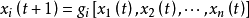 满足方程fi=0的状态,即为系统的平衡态。若ci(i=1,2,…,n)满足稳定性条件,则它就是狭义平衡态。系统的离散时间动态方程如下: