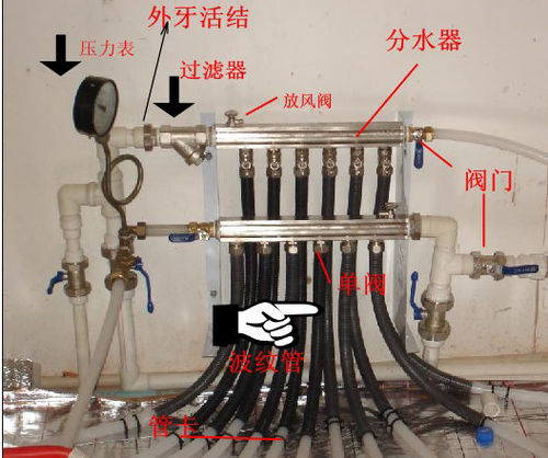 3.供水阀门安装在分水器前面,回水阀门安装在集水器后面;