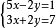 解:由方程可知,5x-2y=1①;3x+2y=7 ②。①+② 可得,(3x+5x)+2y-2y=(7+1)即8x=8,由此可得x=1。再把x=1代入3x+2y=7,可得y=2。2