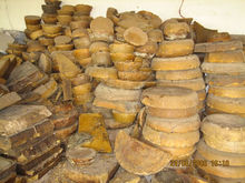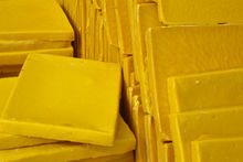 采收和储藏:春、秋季,将取去蜂蜜后的蜂巢,入水锅中加热熔化,除去上层泡沫杂质,趁热过滤,放冷,蜂蜡即凝结成块,浮于水面,取出,即为黄蜡。黄蜡饼经熬炼、脱色等加工过程,即成蜂蜡。