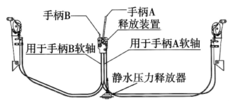 静水压力连锁器是1套通过艇底的静水压力释放器控制的锁定系统。与机械锁的作用位置不同,这套系统直接作用于手柄A,是救生艇在存储状态时的另外1套保护装置,防止误动作导致手柄A移动而意外释放救生艇。