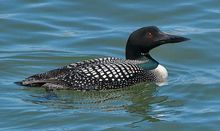 普通潜鸟普通潜鸟,也叫北方大潜鸟,成年普通潜鸟的体长在61-100厘米,翼宽122-152厘米,只比白嘴潜鸟稍微小一点。体重为1.6-8千克,平均为4千克左右。是广泛分布在北美洲的一种潜鸟,被铸造在加拿大一元硬币上,以及20加元纸币的背面。普通潜鸟是加拿大安大略省的省鸟,也是美国明尼苏达州的州鸟。普通潜鸟是捕鱼的好手,可以潜到60米深的水中寻找食物。2