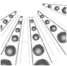 (3)质地梯度(texture gradient)。视野中物体在视网膜上的投影大小及投影密度上的递增和递减,称为质地梯度。当你站在一条砖块铺的路上向远处观察,你就会看到越远的砖块越显得小,即远处部分每一单位面积砖块的数量在网膜上的像较多。看图中的两个图形,