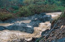 5火山活动使火山口湖附近因水量之溢出形成土石流,或堆积之火山灰因渗透性较差,在地表水充分供给下,使厚层之火山灰形成土石流流下。