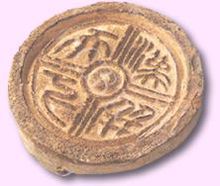 四朵蘑菇形云纹,给人一种强烈的规范化、程式化的美感。青海民和县土唐代羽人图像瓦当,直径13厘米,当面为一圆睁双目拱手站立的童子,两侧有一对刻画逼真的羽翼,似为天使,天真烂漫,质朴无邪,带有外来文化的影响。这是中国古代瓦当中难得的艺术珍品。两汉时期盛行文字瓦当。瓦当文字数从一字至十二字不等,但尚未十一字瓦当。文字瓦当以四字者为最常见。东汉以后,文字瓦当日趋衰落;隋唐以后,文字瓦当已很罕见。