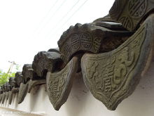 瓦当俗称瓦头。是覆盖建筑檐头筒瓦前端的遮挡(区别于滴水,滴水是指覆盖建筑檐头板瓦前端的遮挡,呈下垂状)。是中国古建筑的重要构件,起着保护木制飞檐和美化屋面轮廓的