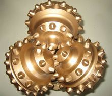 会在牙轮钻头的上部,钻柱与螺纹进行相互连接,钻头下部会存在牙轮,其上带有三个巴掌,牙轮轴上装上牙轮,牙轮轴与各个牙轮之间装有轴承,牙轮