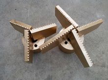 在PDC的生产技术尚未成熟,或者说PDC钻头刚开始开发之前的一段时间,就有厂家用无硬质合金衬底的聚晶人造金刚石取代天然大颗粒金刚石来制造表镶钻头。聚晶体的形状有一端为圆锥的圆柱形、三角块形、圆片形及矩形、块形等多种,如GE公司的Geoset、Fomset,De Beers公司的Syndax3以及郑州三磨所的TSP,