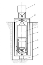 浇铸漏斗可由混合后的混合锅下部放料阀通过连接管接浇铸阀,也可用专用浇铸漏斗。药浆在浇铸过程中都需保温。在漏斗外都有通循环水的夹套。花板有圆孔(直径3~5 mm)、月牙或扁孔,宽5~7 mm,长20~30 mm,根据工艺特点,也可选用其他形状和尺寸。较小发动机直径在200 mm以内,药形单一,可用一缸多发。
