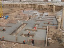 4、找平,通过调整厚度弥补土方开挖的误差,使底板受力在一个平面,也不浪费基础的高标号砼。