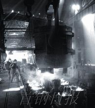 传统的转炉炼钢过程是将高炉来的铁水经混铁炉混匀后兑入转炉,并按一定 比例装入废钢,然后降下水冷氧枪以一定的供氧、枪位和造渣制度吹氧冶炼。当达到吹炼终点时,提枪倒炉,测温和取样化验成分,如钢水温度和成分达到 目标值范围就 出钢。否则,降下氧枪进行再吹。在出钢过程中,向钢包中加入脱氧剂和铁合金进行脱氧、合金化。然后,钢水送模铸场或连铸车间铸锭。