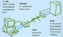 计算机在发送数据时,先由Modem把数字信号转换为相应的模拟信号,这个过程称为“调制”。经过调制的信号通过电话载波传送到另一台计算机之前,也要经由接收方的Modem负责把模拟信号还原为计算机能识别的数字信号,这个过程称为“解调”。正是通过这样一个“调制”与“解调”的数模转换过程,从而实现了两台计算机之间的远程通讯。1