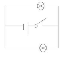 ,为电路组成二种基本的方式之一。例如,一个包含两个电灯泡和一个9 V电池的简单电路。若两个电灯泡分别由两组导线分开地连接到电池,则两灯泡为并联。