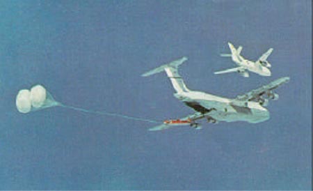 当时美国也多次做过用大型军用运输机发射“和平卫士”(MX)和“民兵”洲际导弹的试验。不过美国的方式基本是用运输机货运舱投放导弹,再点火飞行。