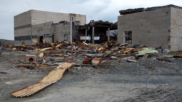 左侧破败的厂房,右侧铁盖下就是科拉超级深钻孔