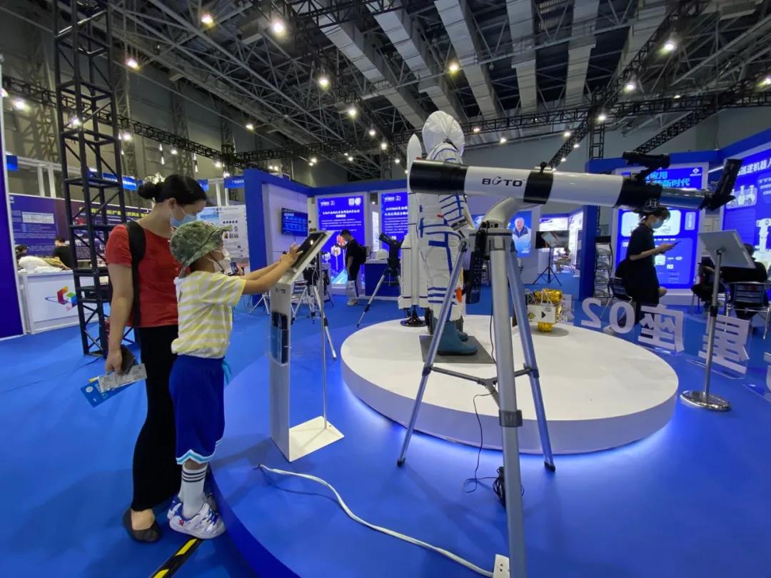 在“承”展区(展区主题:“承”载梦想,问天星辰)中,以“太空发现”为展览主线,借助北斗系统、航天卫星等航天展览,同时还增添天文望远镜等互动展位,向市民科普航天科技知识、展示宇宙奥秘。