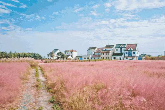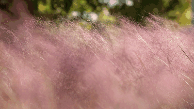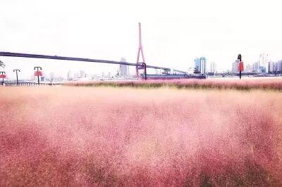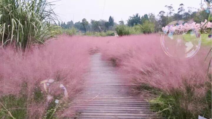 金秋时节开始盛放,开花时,绿叶为底,粉紫色花穗如发丝从基部长出,也就是说,大家看到的粉色的雾状的东西便是粉黛乱子草的花。