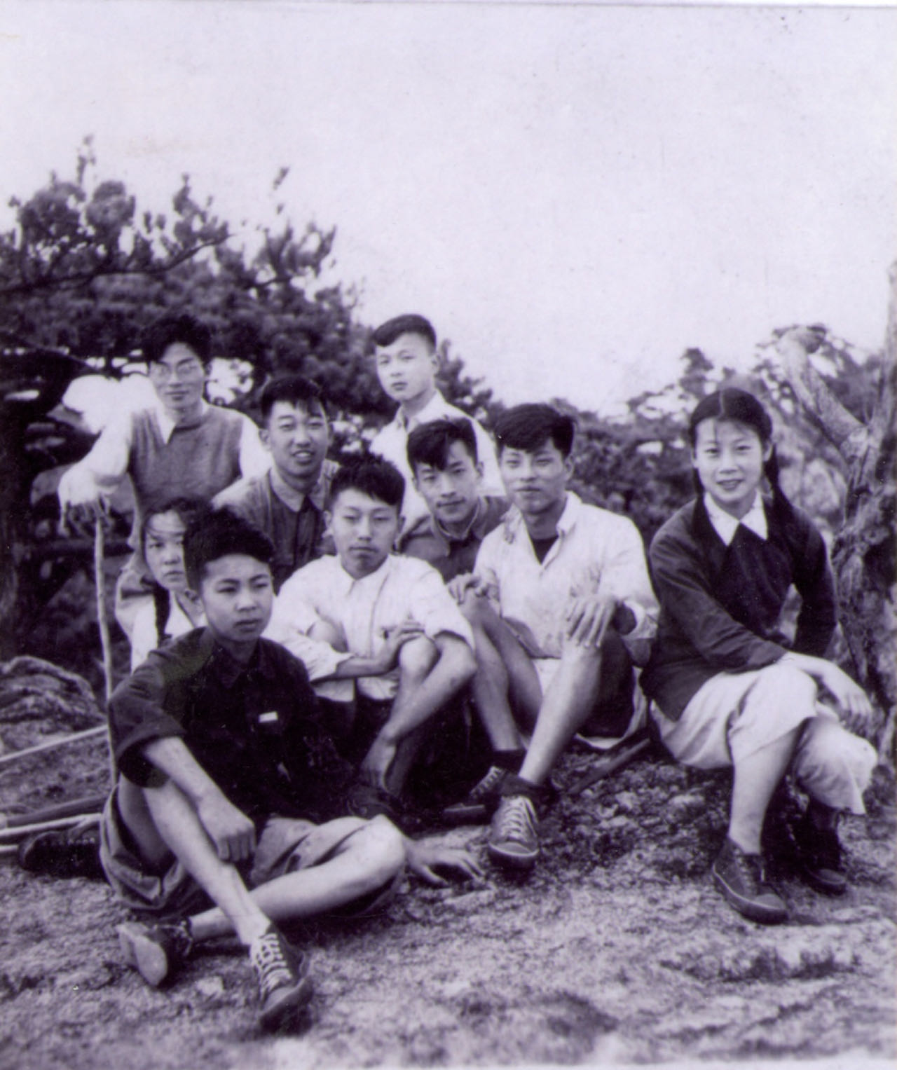1953年,沈家骢(右三)与化学系年轻教师在辽宁千山。