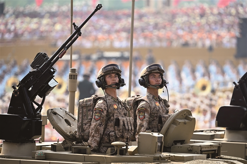 | 地面突击方队头戴智能显示头盔接受检阅。新华社 李尕 摄 |