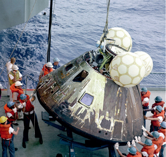 “阿波罗13号”航天员返回地球,溅落在大海中