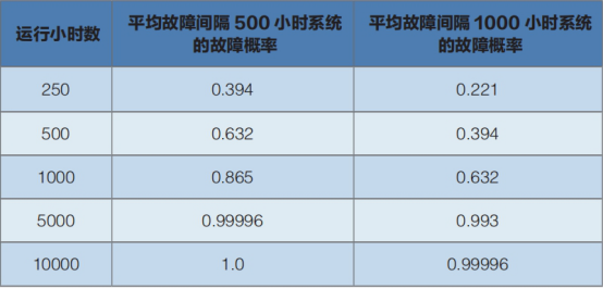 当人们打算开发一种长任务寿命的航天器的时候,要不要考虑救援系统,就更加重要了。在长期在轨运行的航天器中,因为无法完全杜绝故障概率,所以出现问题的可能性是随着任务周期延长而逐步积累的。而且,考虑单个部件或者组件的可靠性上限,系统可靠性也是有上限的。如果组件的故障率以故障/单位时间表示,则故障概率可以大概表达为下表。