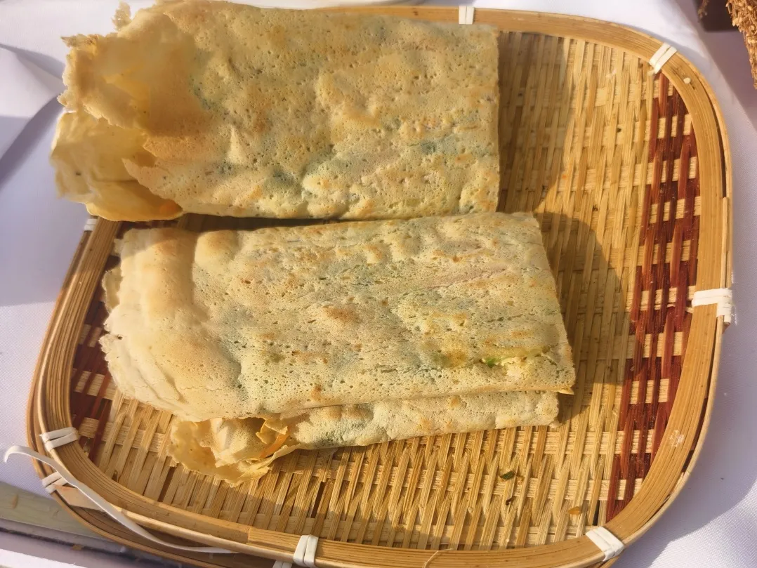 赣榆人的一天,大多从食用煎饼开始。刚摊好的赣榆煎饼薄如宣纸、色泽微黄,单独品尝,酥脆绵韧,口鼻之间满是谷物的醇香。与口感软嫩的天津煎饼、质地厚实的山东煎饼判然有别。