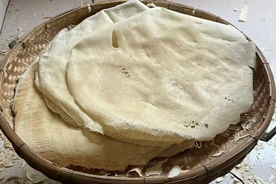 据该技艺市级非物质文化遗产代表性传承人介绍,赣榆煎饼以小麦、燕麦、黄豆、玉米等谷物为主要原料,经浸泡、磨糊后,以铁鏊为工具,用慢火、手工摊制而成,讲究糊子稀稠有度、火候掌控精准。