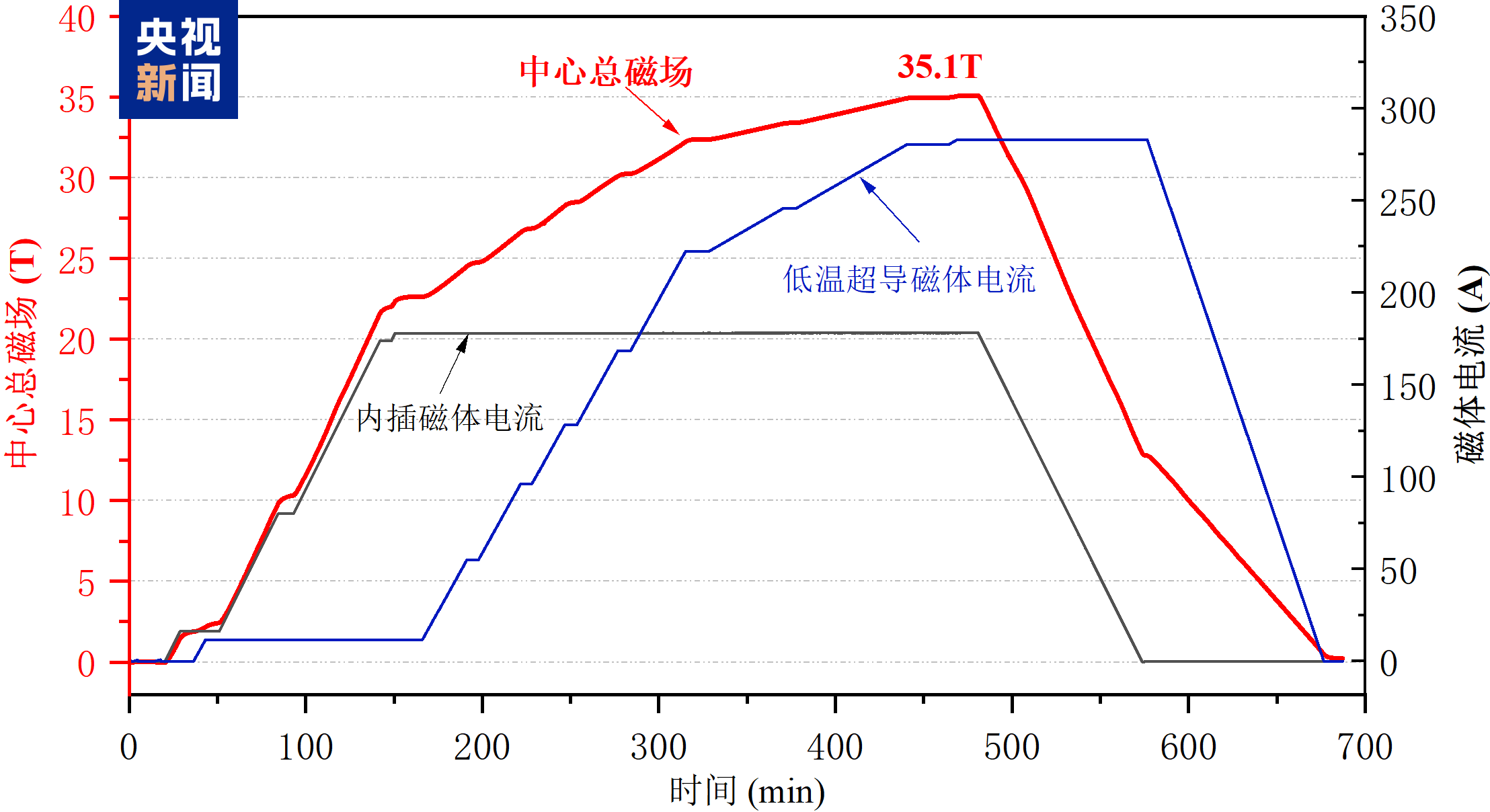 在2025年9月26日夜至27日凌晨的实验中,这台凝聚着无数心血的超导磁体开始了它的挑战之旅。科研人员小心翼翼地将磁体励磁,电流逐渐增大,磁场强度稳步攀升。当显示屏上的数字最终定格在35.1特斯拉时,实验室里的气氛既紧张又振奋。