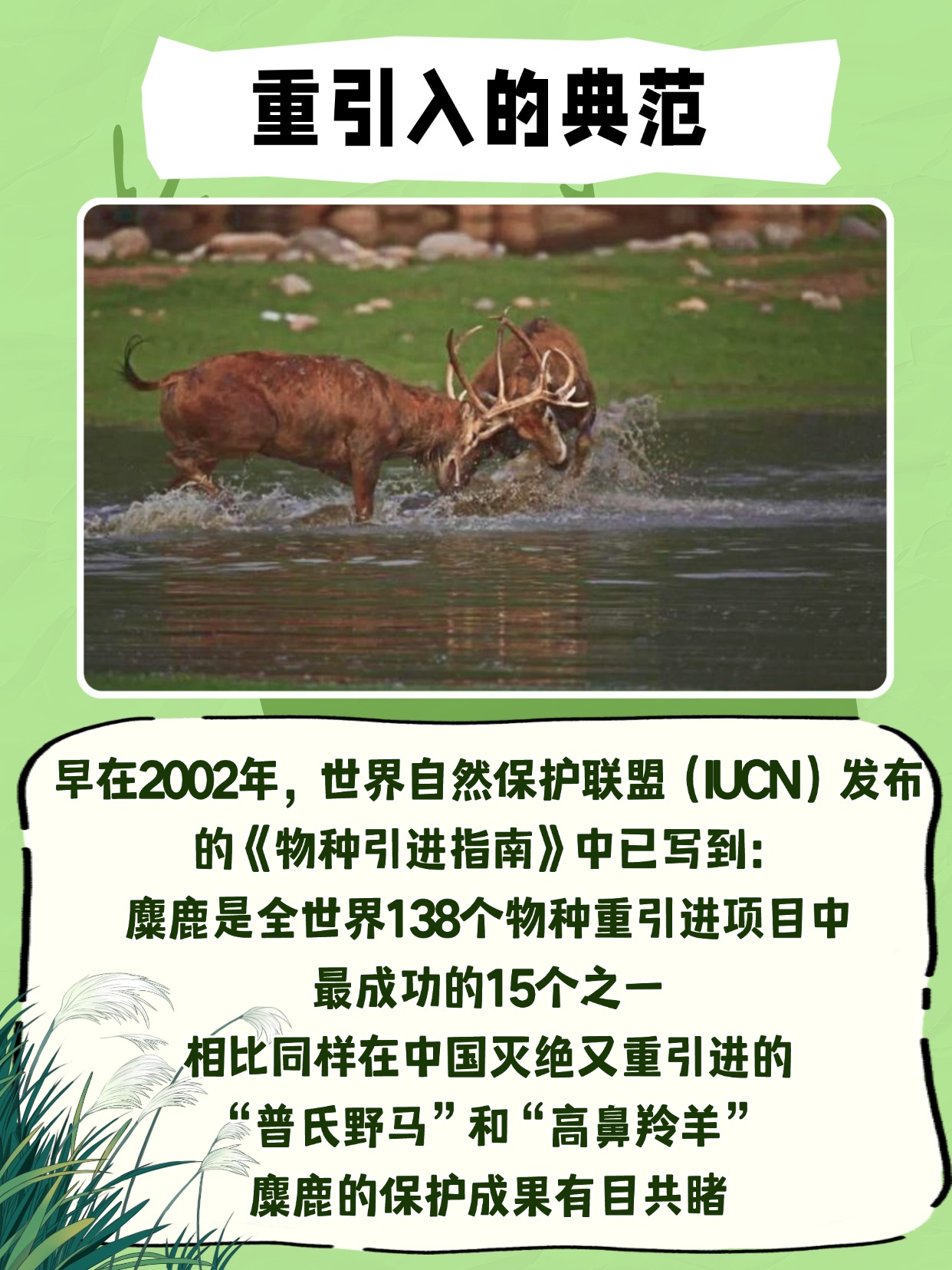 今天给大家科普一个超厉害的物种保护案例——麋鹿重引进,它可是全球物种保护界的“超级明星”🤩!早在2002年,世界自然保护联盟(IUCN)就把它列为全世界138个物种重引进项目中最成功的15个之一,这含金量简直无敌了👏!