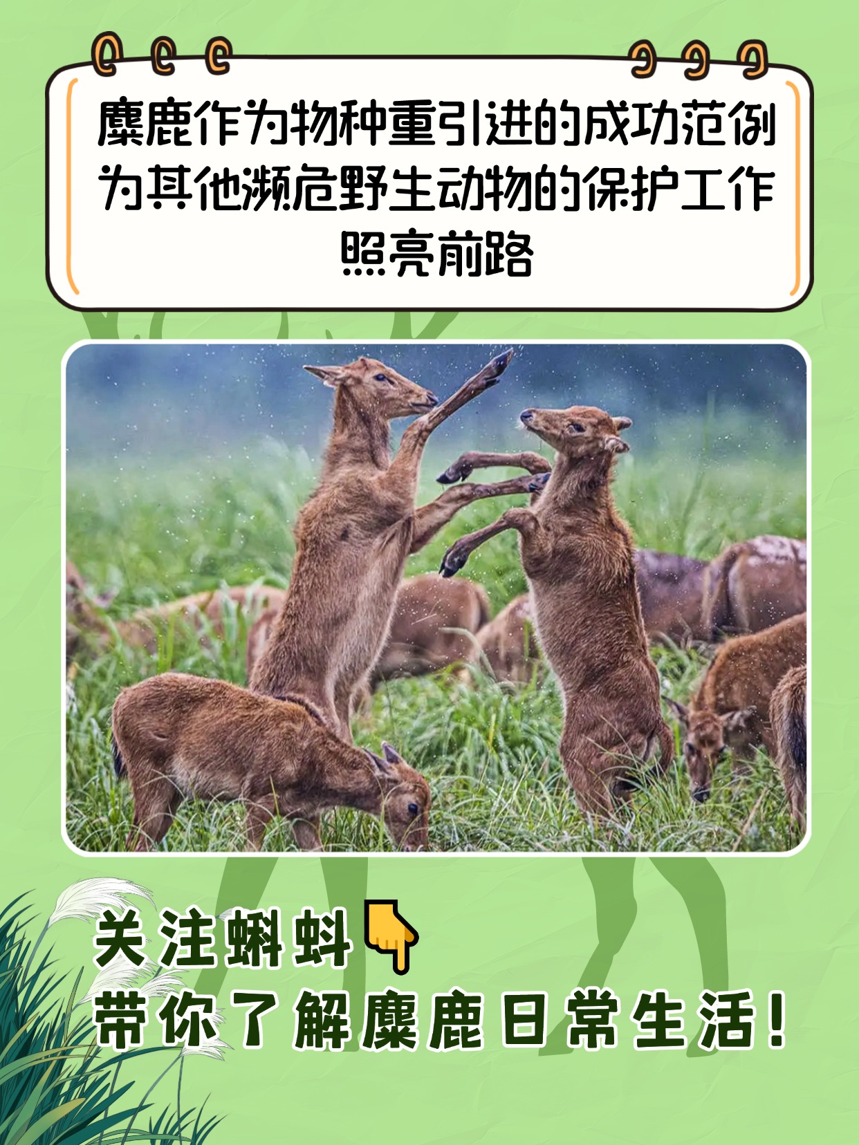 麋鹿重引进成功,不仅让这一物种重焕生机,更为其他濒危野生动物保护提供了宝贵经验。让我们一起为这伟大的生态保卫战点赞👍!也期待更多濒危物种能像麋鹿一样,重归自然怀抱🌳。