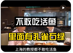 最近,身边又掀起了一阵不敢随便吃活鱼的恐慌,仔细一问才知道大家是被一则消息吓到了,一些短视频和社交平台帖子声称:“运输时商贩为了不让鱼死,都会往水里加孔雀石绿,这种化学物质剧毒致癌!”这样的说法配上一些煞有介事的视频,真是让人心头一紧。