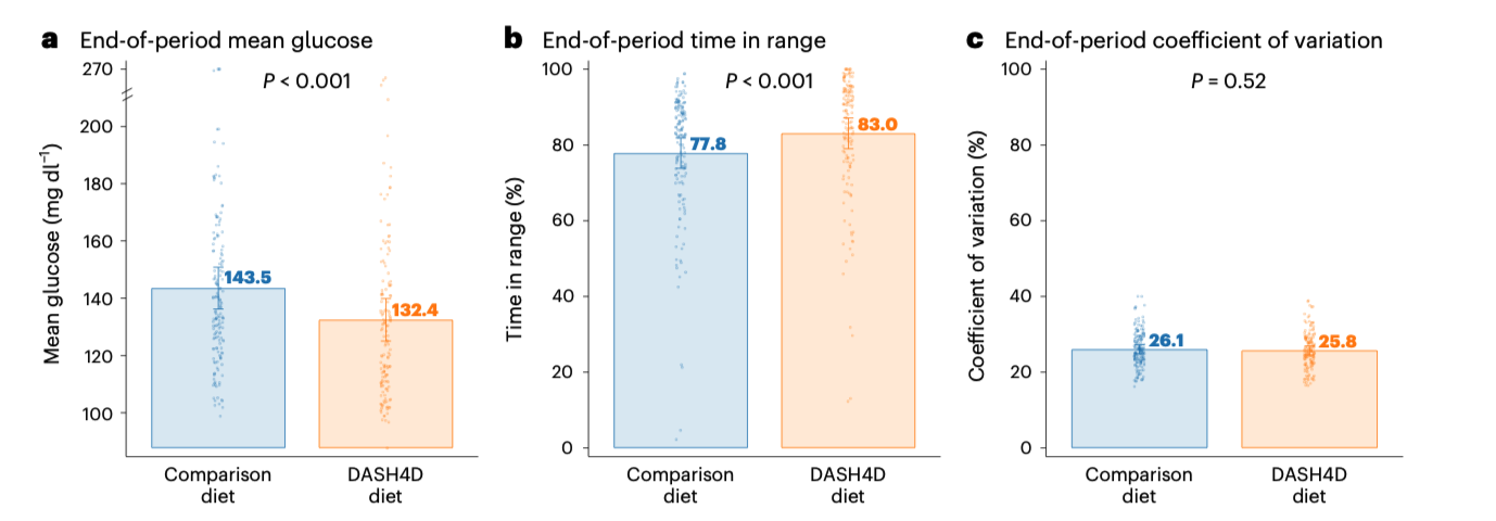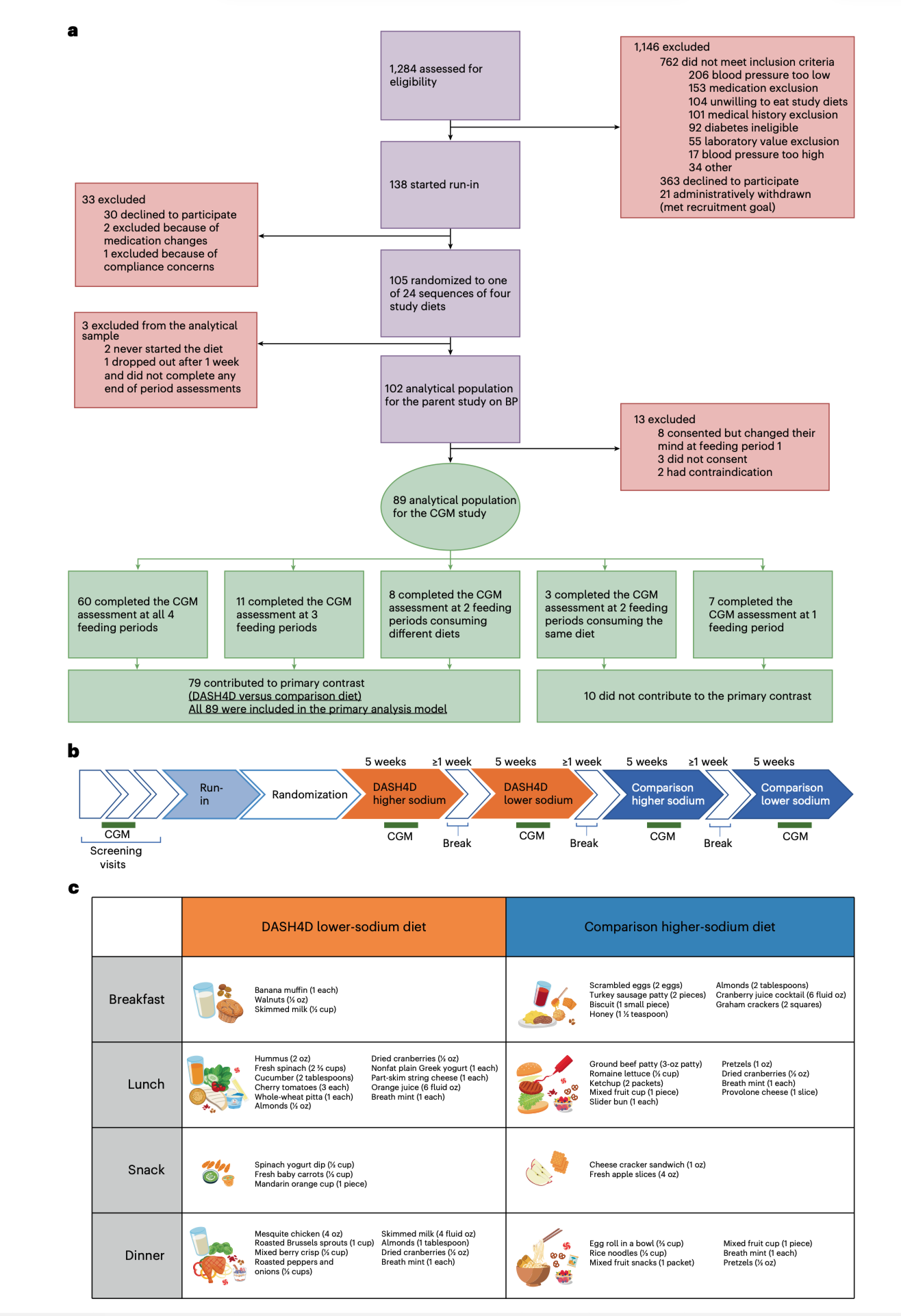 这项研究发表于 Nature Medicine,名称为 DASH4D 饮食随机交叉临床试验。