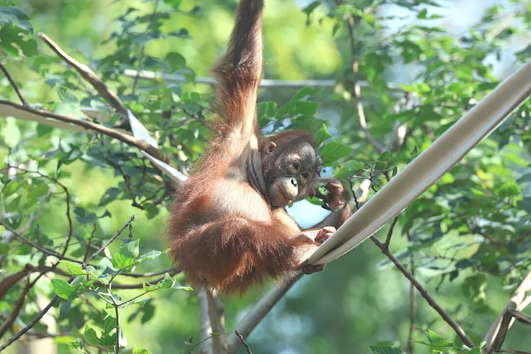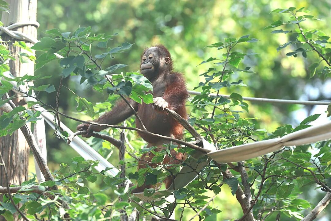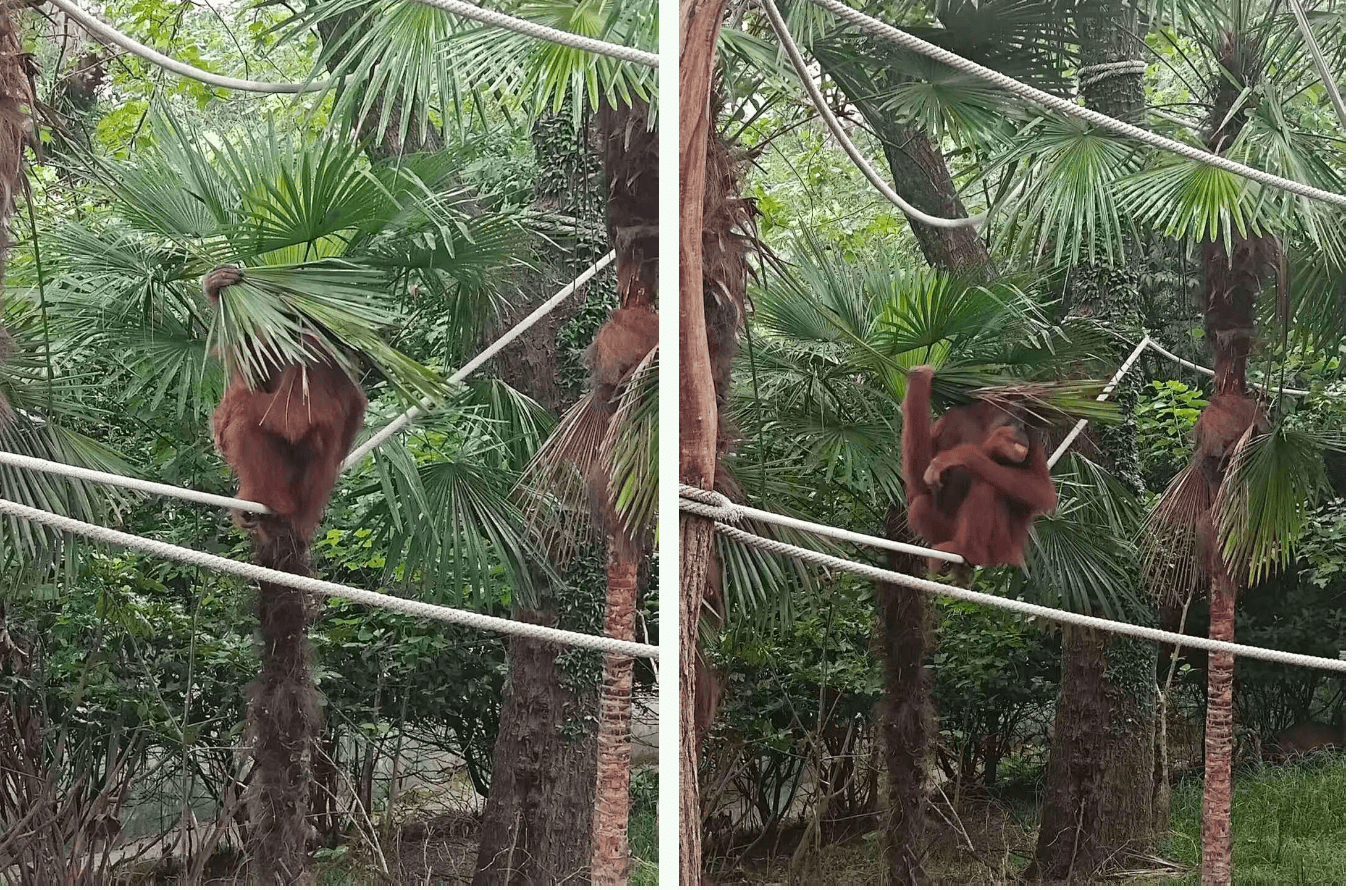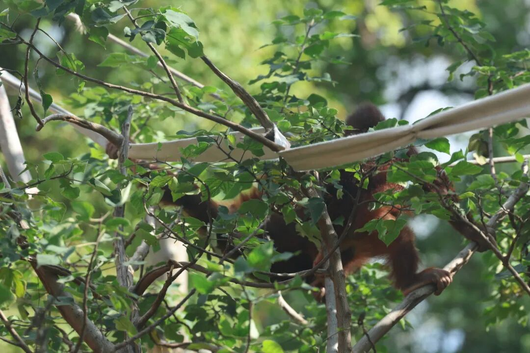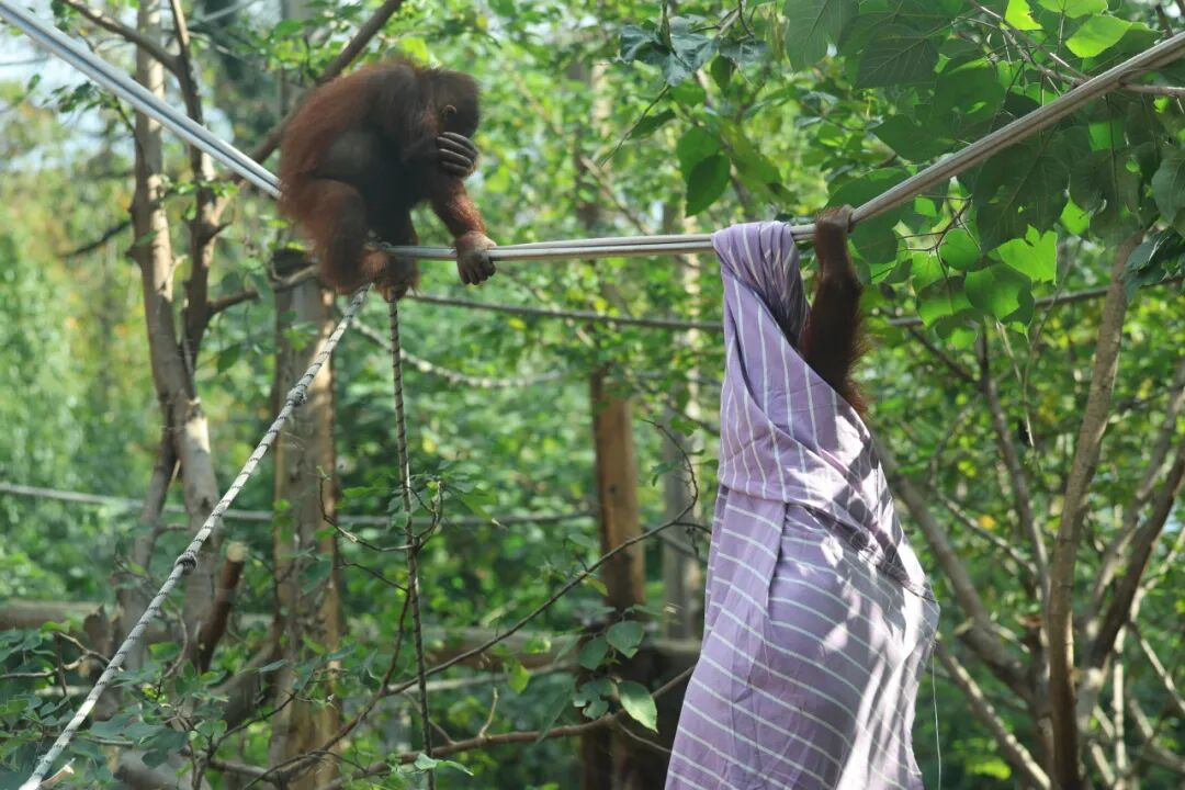为了让红毛猩猩充分舒展自然天性,时刻对生活保有新鲜感与探索劲儿,饲养员早把“自然的温柔”细细揉进了改造计划,不断给他们的生活添新趣。