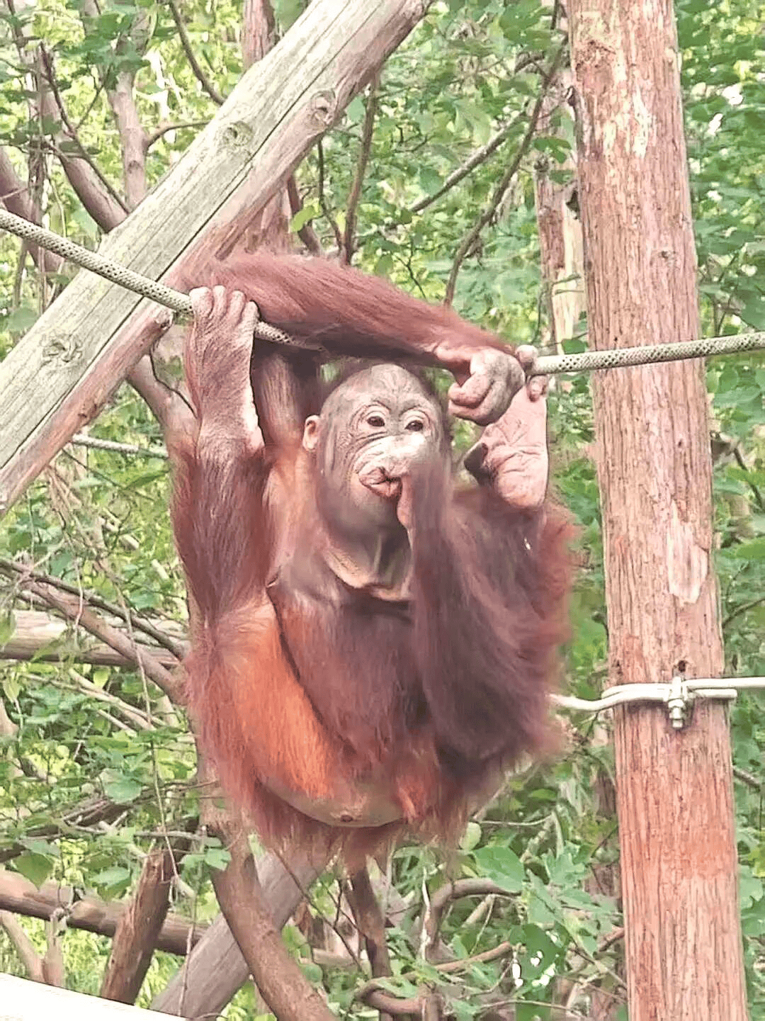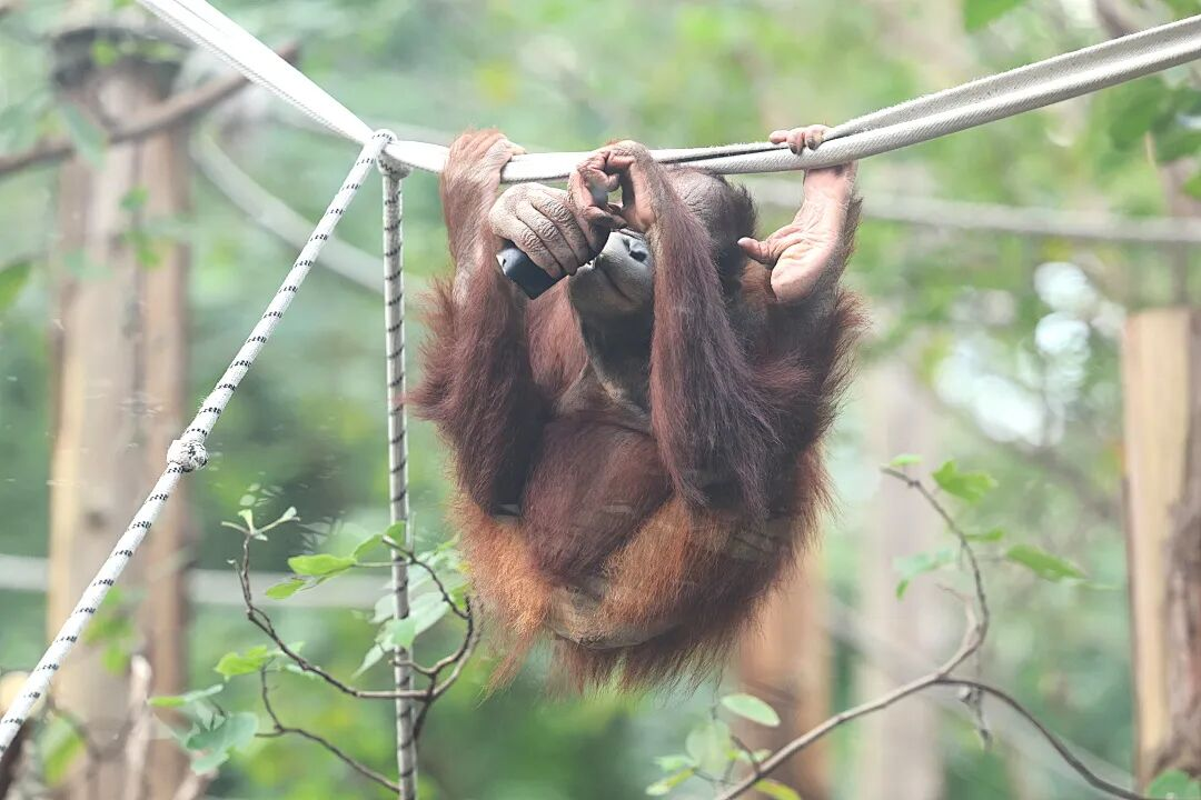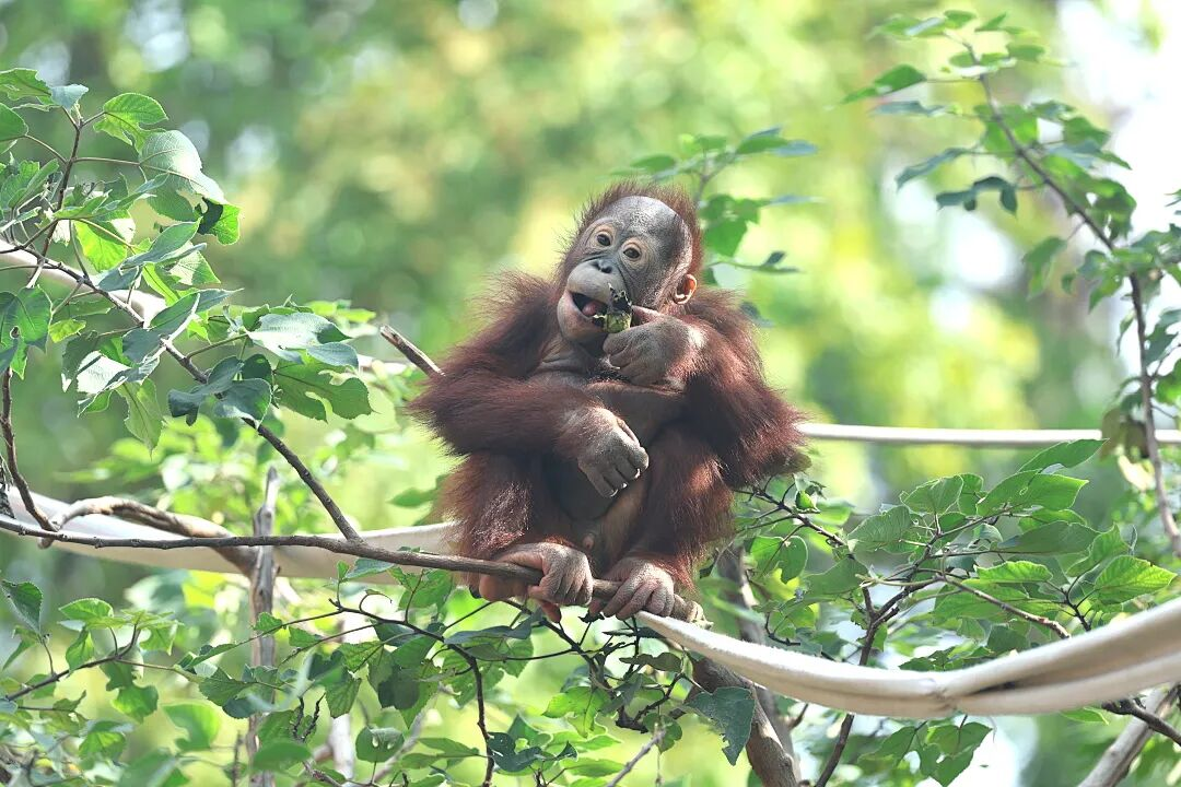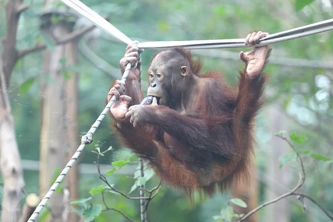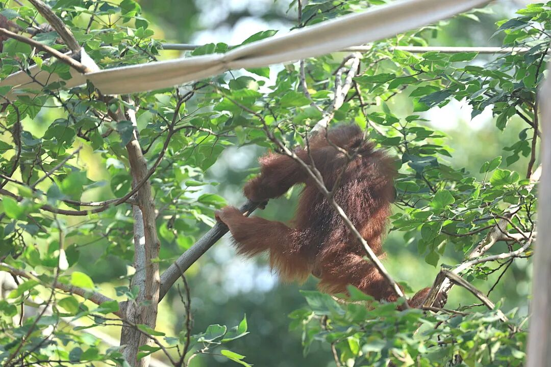 为了让红毛猩猩充分舒展自然天性,时刻对生活保有新鲜感与探索劲儿,饲养员早把“自然的温柔”细细揉进了改造计划,不断给他们的生活添新趣。