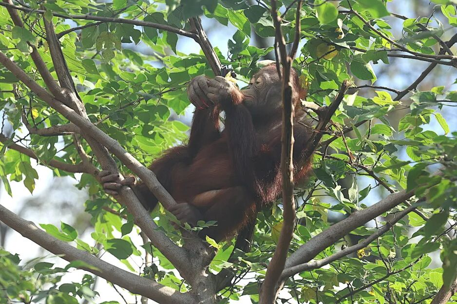 红毛猩猩的四肢无明显手脚区分,却长有和人类相似的对生拇指与对生大脚趾,让他们能够牢牢抓握。