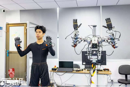 ▲五八智能训练师正运用动捕技术训练人形机器人。摄影:曹坚