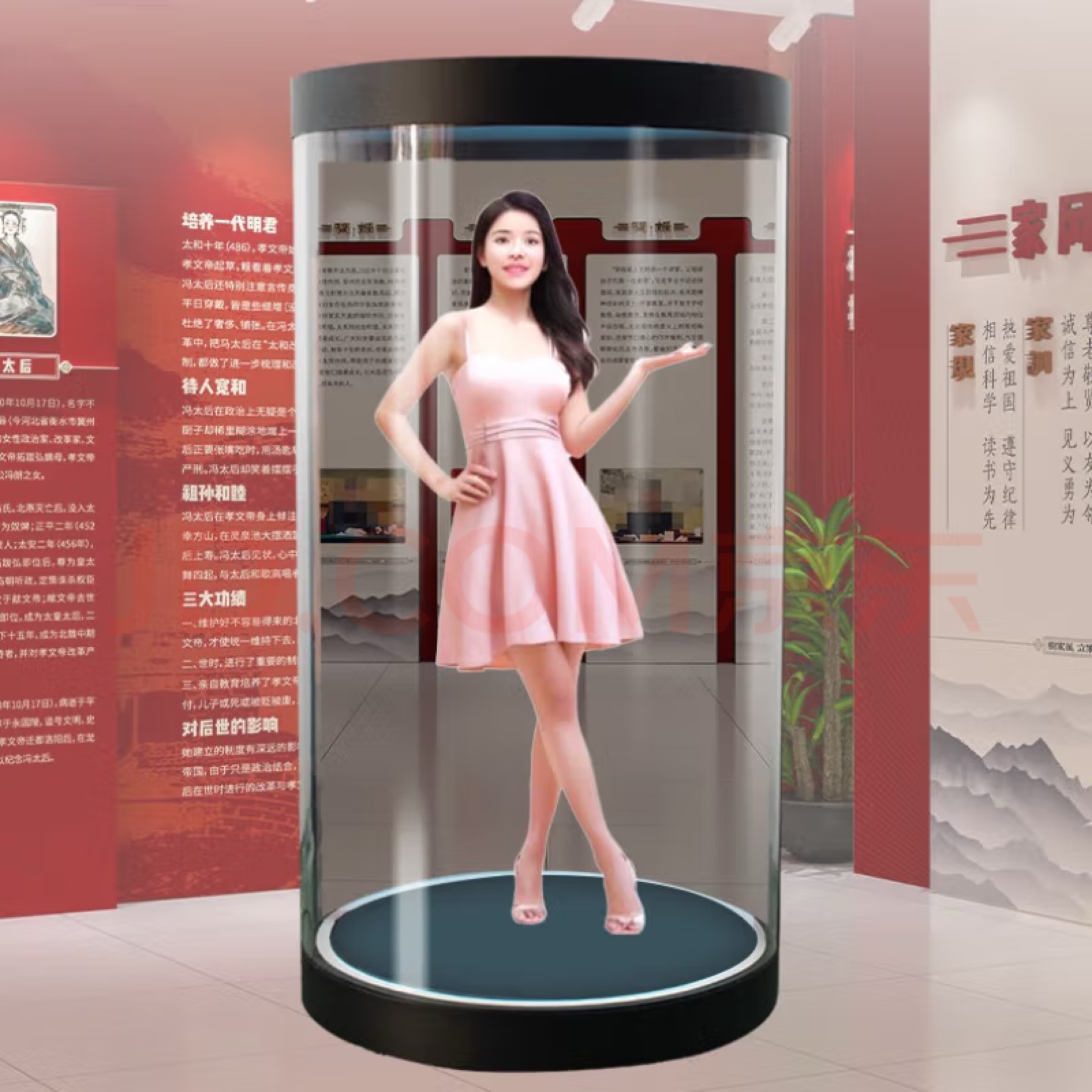 全息舱:采用裸眼3D光学技术(如柱状透镜、光场显示),无需佩戴设备即可呈现悬浮立体影像,支持360°观看,适配数字人、产品模型、虚拟场景等内容的展示,尺寸可定制(桌面型、站立型、大型舱体)。