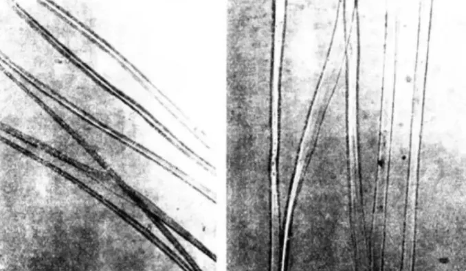 左图为三眠蚕蚕丝,右图为现代四眠蚕蚕丝